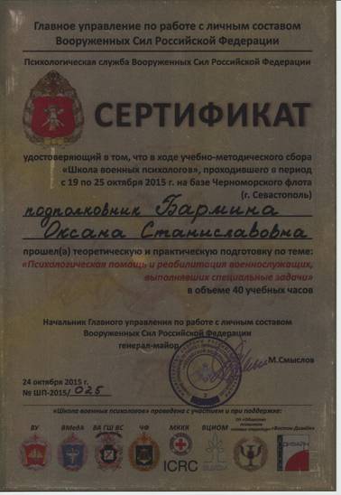 Практикующий военный психолог с опытом работы более 17 лет. Автор 9 научных публикаций в ведущих журналах Москвы и Хабаровска.
