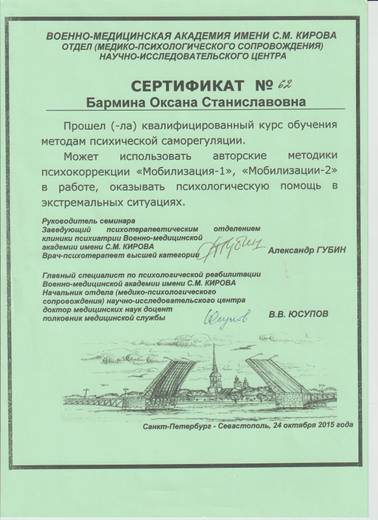 Бармина Оксана Станиславовна