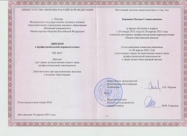 - 2013–2021 — начальник центра (психологической работы) военно-политического управления ОСК Восточного военного округ в области нейрологопедии и биомеханики