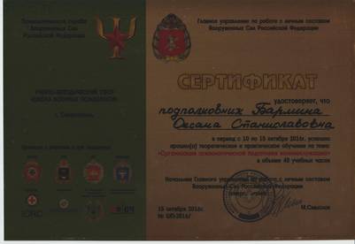 - 2000–2009 — военный психолог воинской части №11666